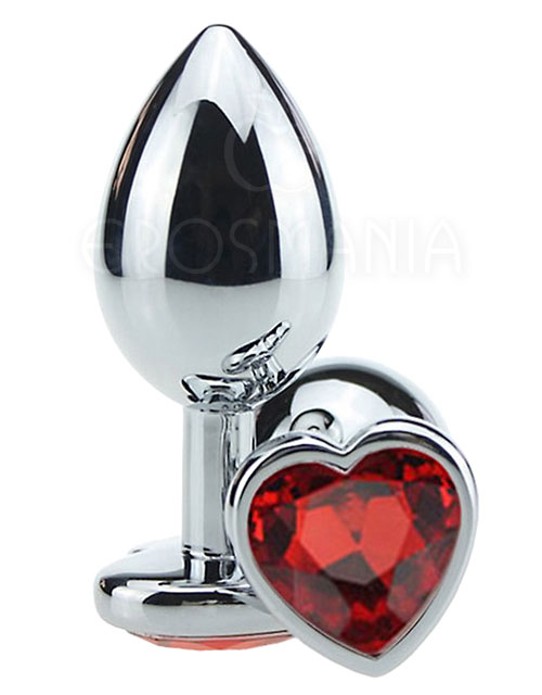 Plug anal de metal cromado, na cor prata, super liso e sem emendas para permitir facilidade no uso. Possui um uma belíssima jóia em cristal lapidado, na cor vermelha, na forma de coração, incrustada na base para você desfrutar dos prazeres do fetiche anal. Beleza e prazer em uma peça de alta qualidade. É ótimo para reproduzir temperaturas: para esfriar basta colocá-lo na geladeira e para aquecer basta mergulhá-lo em recipiente com água quente. Por ser maciço, a temperatura desejada é mantida por mais tempo.