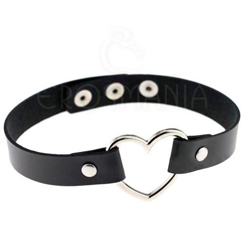 Coleira de couro, com 3 regulagens através de arrebites cromados. Possui lindo pingente cromado em formato de coração na frente.