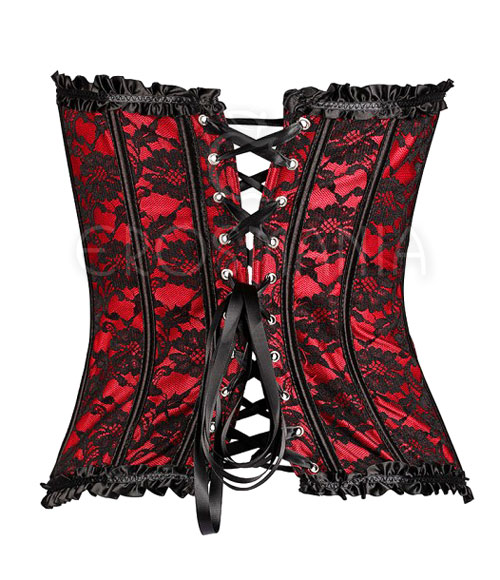 Chique, sensual e atrevido corselet de tule bordado, com ajuste trançado nas costas e fechos de inox na parte da frente que dão um visual de alto luxo e erotismo. Modelo tomara-que-caia, possui barbatanas em toda volta que firmam e valorizam seus seios e destacam suas curvas. Acabamento na barra e no busto em viés de cetim plissado e fita dupla no busto, fechando em um grande laço.