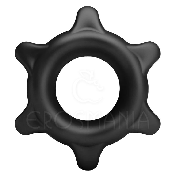 Modo de uso: Lubrifique o pênis e deslize o anel até a base, próximo à virilha. Pode ser usado com preservativo e lubrificante à base de água.