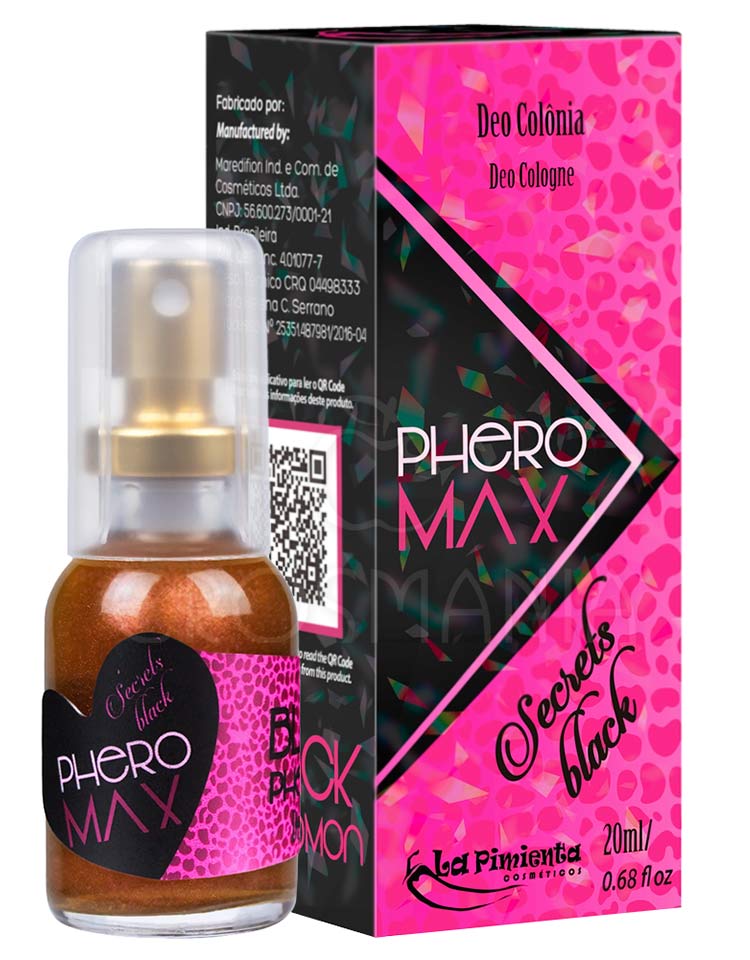 O Phero-Max Secrets Black é um perfume feminino que traduz intensidade e sedução em cada borrifada. Criado especialmente para quem deseja exalar confiança e mistério, combina notas doces e marcantes com um fundo elegante, resultando em uma fragrância envolvente que desperta desejo e curiosidade.