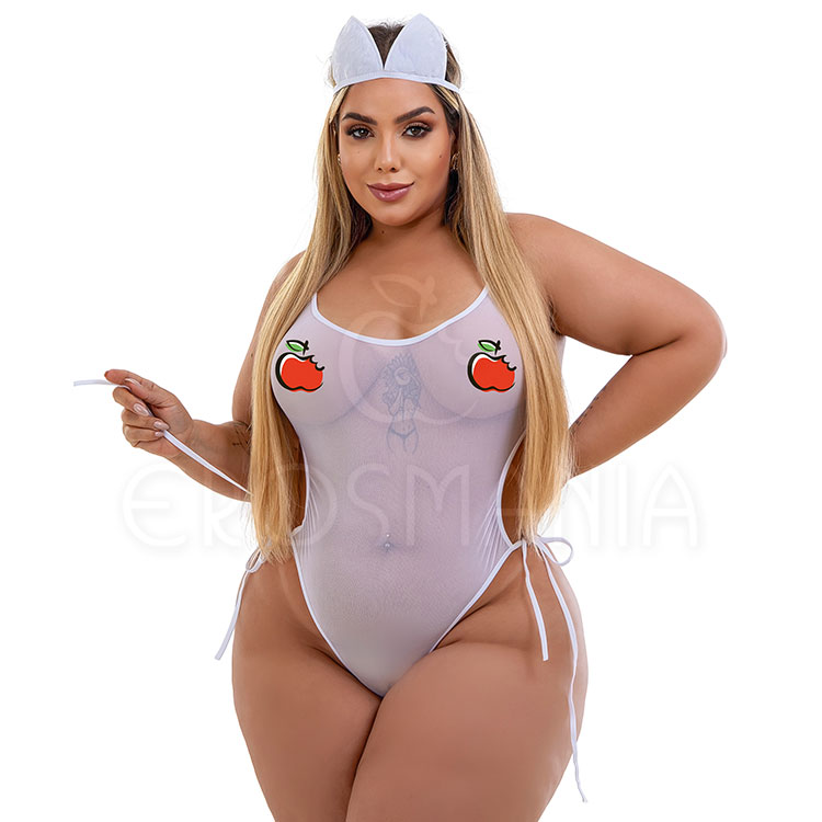 A Fantasia Erótica Coelhinha da Tallyta Lingerie é a escolha ideal para quem deseja despertar a sedução com um toque de charme e diversão. O body fio dental, confeccionado em tule transparente com elastano, se ajusta perfeitamente ao corpo, destacando suas curvas de forma sensual e envolvente. O detalhe do pompom de pelúcia na parte traseira adiciona um toque lúdico e irresistível. Para completar a tiara com orelhinhas peluciadas garante um visual provocante e encantador. Seja para momentos especiais ou para surpreender, esta fantasia eleva a temperatura com estilo e ousadia.