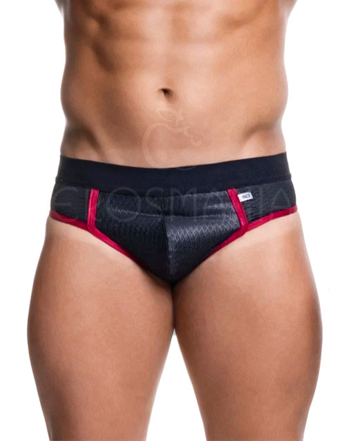 Esta cueca combina ousadia e estilo em um design que foge do comum. Com frente em formato slip e costas no estilo jockstrap, a peça traz abertura total no bumbum, destacando o corpo com atitude. O cirrê preto recebe detalhes vermelhos trabalhados que criam contraste elegante e marcante, perfeito para quem gosta de provocar com sofisticação.