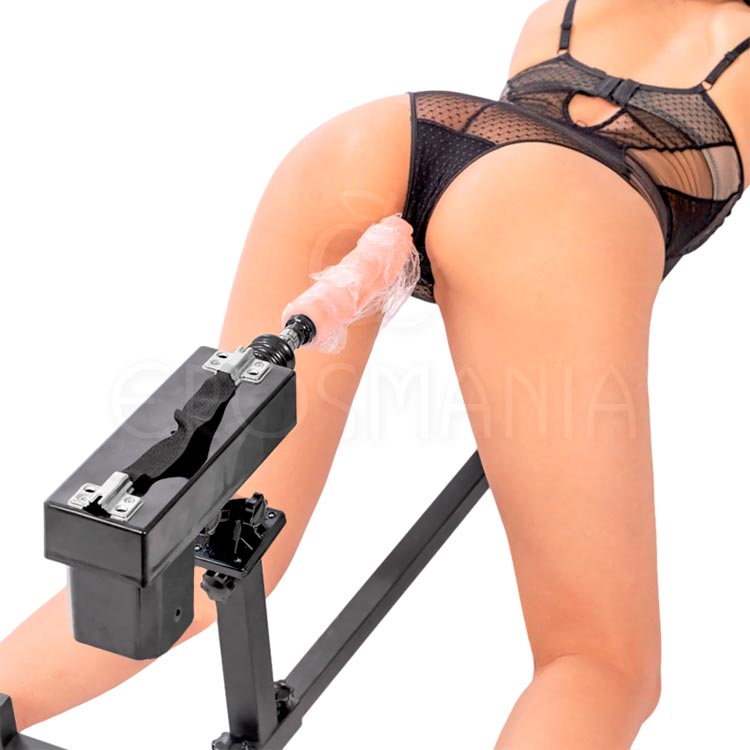 - Conecte a fonte bivolt à tomada e ajuste o acessório de penetração na máquina de sexo.
