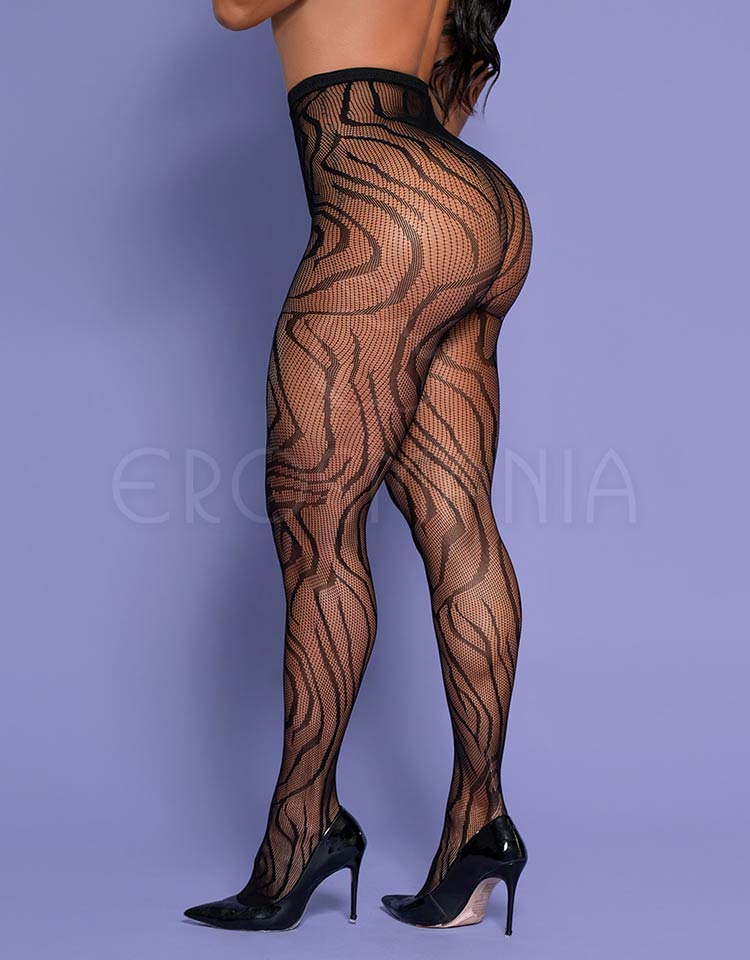 - Meia calça em arrastão com desenhos ondulados.