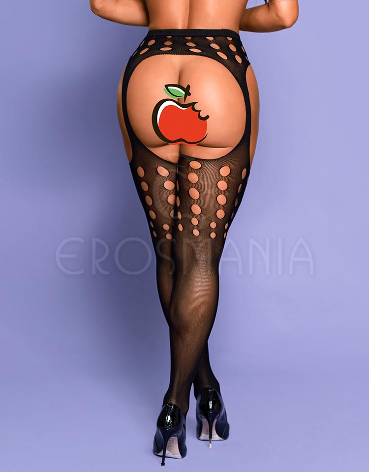 A meia 7 8 com cinta liga embutida entrega um visual provocante e elegante ao mesmo tempo, misturando a trama arrastão com recortes circulares que criam pontos de destaque ao longo das pernas. A estrutura integrada da cinta facilita o uso e mantém tudo no lugar, oferecendo praticidade sem abrir mão da sensualidade. O elástico canelado proporciona firmeza suave na cintura, deixando a peça estável durante o movimento.