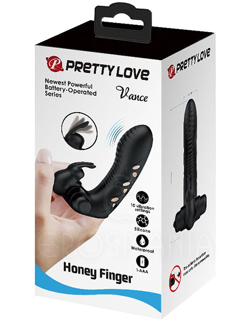 Vance, é perfeito para proporcionar poderosos orgasmos femininos. Usado no dedo tem a ponta curva, com eficiente vibrador, para massagear o ponto G facilmente e possui um estimulador do clitóris na forma de coelho que proporciona intensos orgasmos clitorianos. Tem 10 funções entre vibrações pulsantes e escalonadas. Em silicone aveludado de grau médico, oferece muito prazer com conforto.