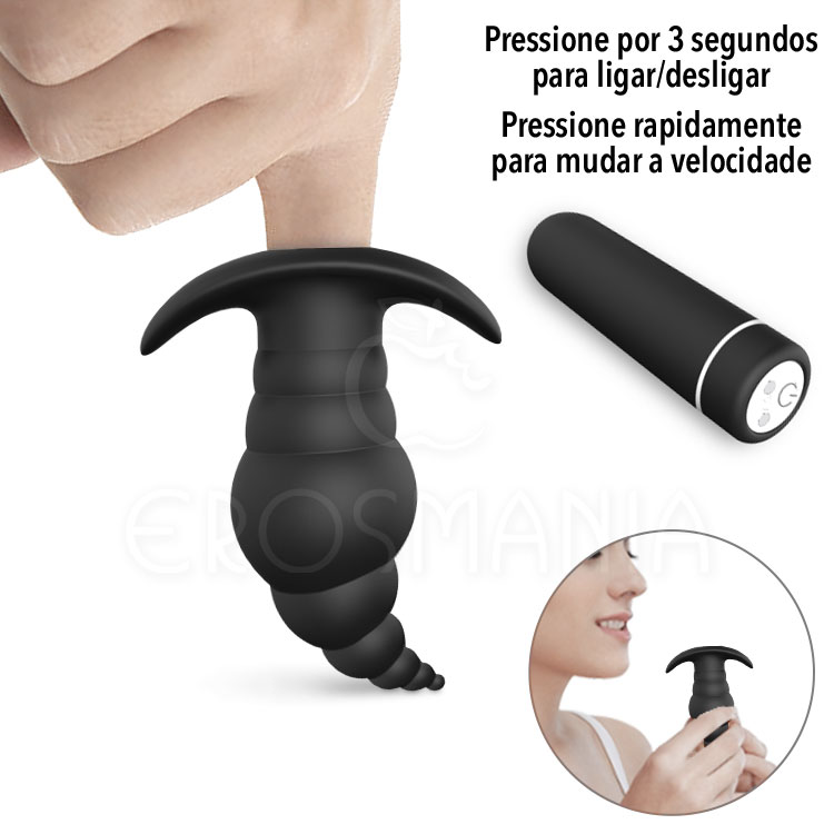 Plug anal penetrador em silicone aveludado de grau médico com micro vibrador (bullet) de alta frequência com 9 funções. Ponta fina facilita a penetração e os anéis em relevo de vários diâmetros proporcionam eficiente estímulo levando a elevados prazeres anais. Com controle remoto sem fio pode ser operado pelo(a) parceiro(a), potencializando a relação íntima e conferindo grande prazer para ambos. Base tipo âncora garante maior segurança e facilidade no manuseio. Resistente à água transforma o banho de chuveiro em momentos de êxtase. O vibrador pode ser removido e utilizado em outros brinquedos sexuais e no estímulo de outros pontos erógenos do corpo.
