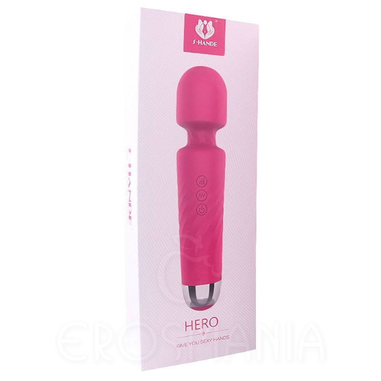 Hero é um super estimulador e massageador, tipo varinha mágica, em silicone de alta qualidade de toque aveludado, com vibrador de última geração com 28 modos diferentes de vibração e pulsação. Ponta flexível para estimular os pontos erógenos com eficiência e conforto, proporcionando intensas sensações e incríveis orgasmos. Potente, porém discreto, com baixo nível de ruído. Recarregável dispensa pilhas. À prova d'água, transforma seu banho de chuveiro em momentos de puro êxtase.