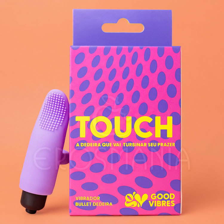 O Touch é um vibrador tipo bullet com dedeira que potencializa o estímulo feito com os próprios dedos. Com encaixe anatômico, ele acompanha o movimento da sua mão, mantendo a vibração constante enquanto você explora cada detalhe do corpo ou do momento a dois.